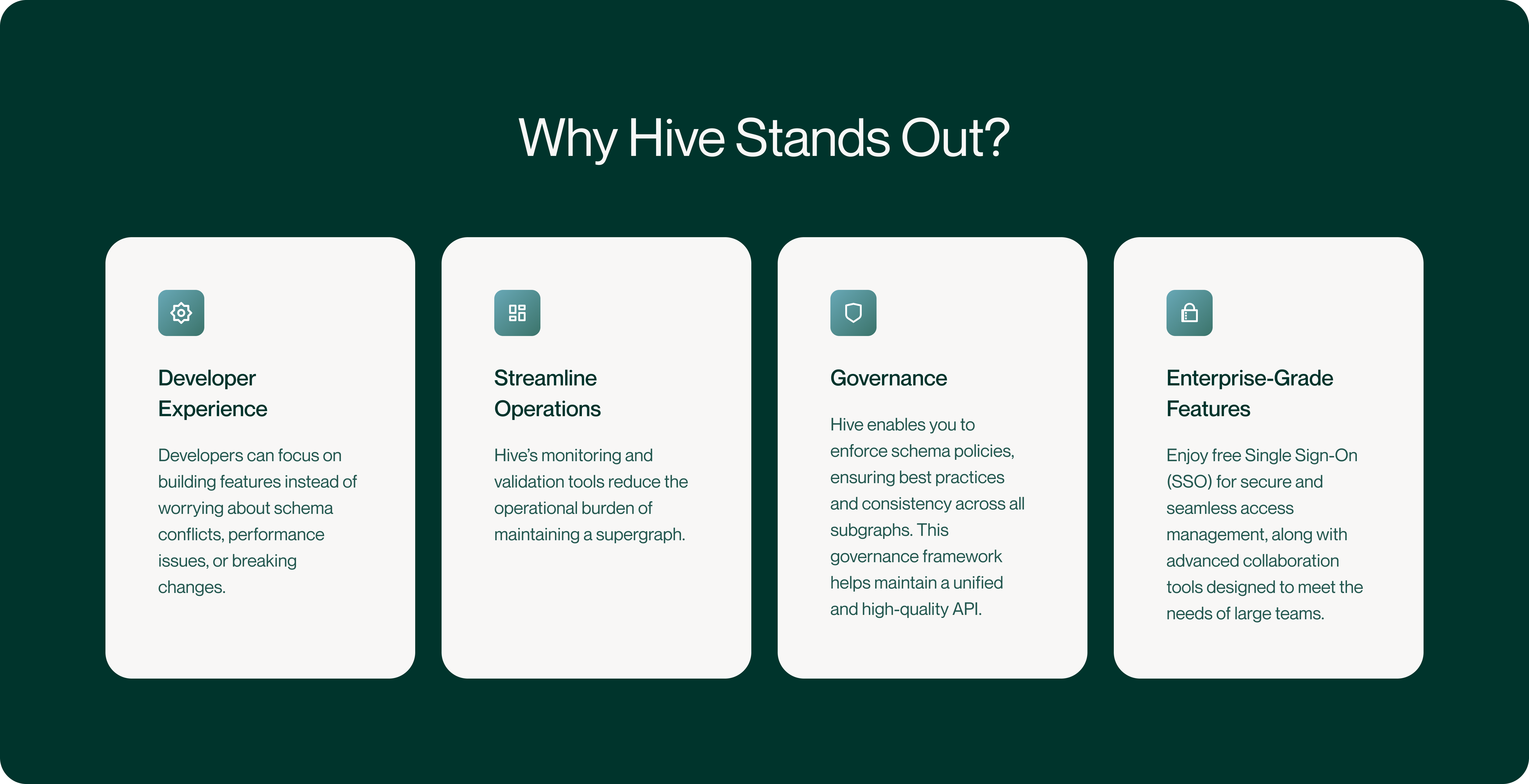 Streamlined Operations: Hive's monitoring and validation tools reduce the operational burden of maintaining a supergraph.